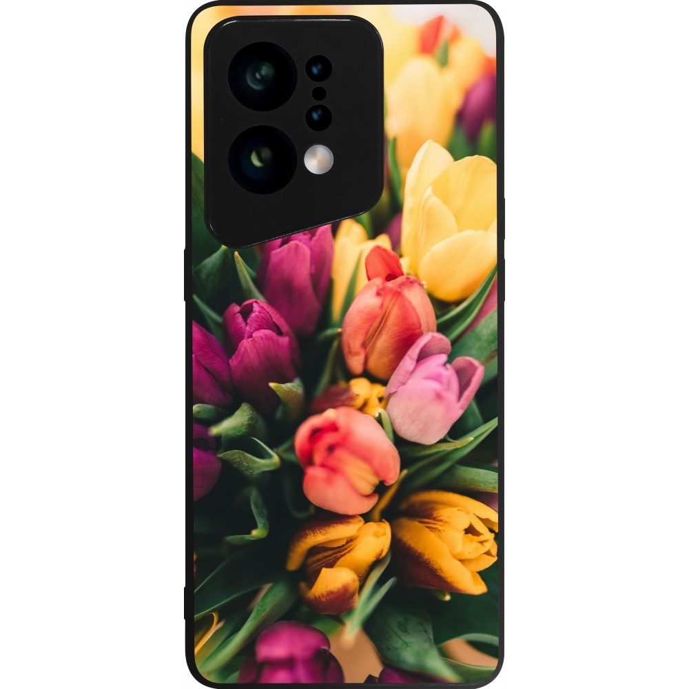 Coque OPPO Find X5 - Silicone rigide noir Bouquet of tulips Spring 2026