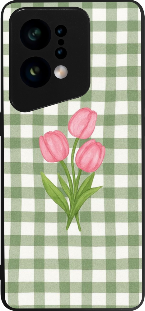 Coque OPPO Find X5 - Silicone rigide noir Green vichy tulips Spring 2026