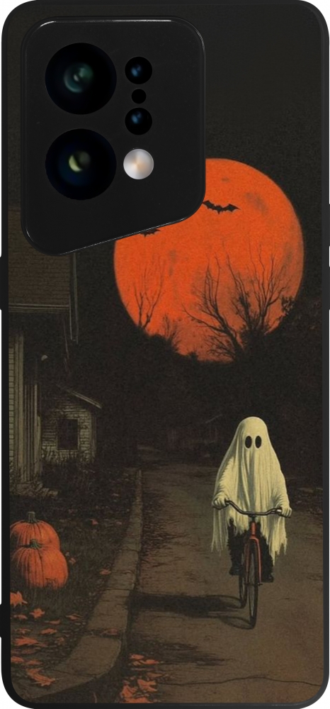Coque OPPO Find X5 - Silicone rigide noir Halloween 2025 Ghost on a bicycle