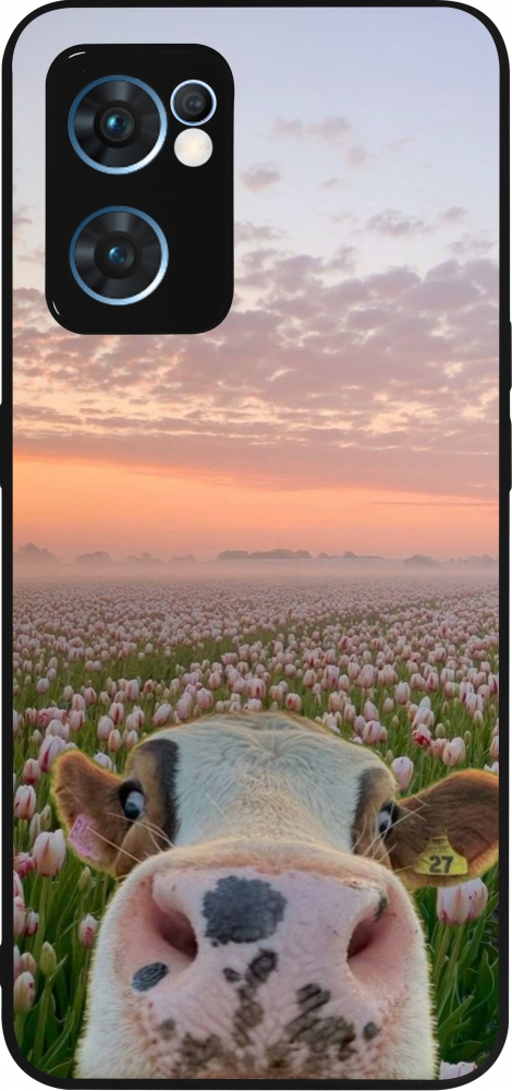 Coque OPPO Reno7 5G - Silicone rigide noir Cow with tulips 2026