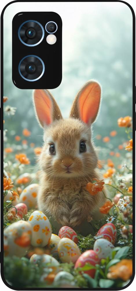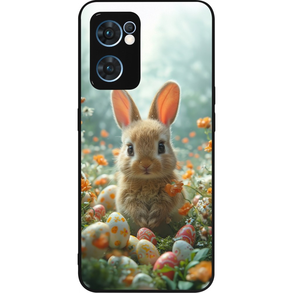 Coque OPPO Reno7 5G - Silicone rigide noir Easter 2026 Rabbit in the garden