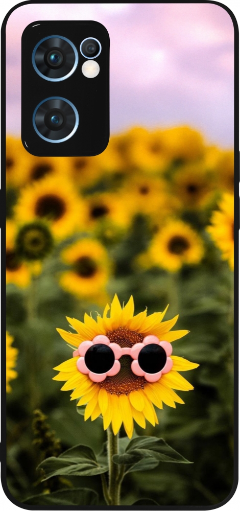 Coque OPPO Reno7 5G - Silicone rigide noir Sunflower with glasses 2026
