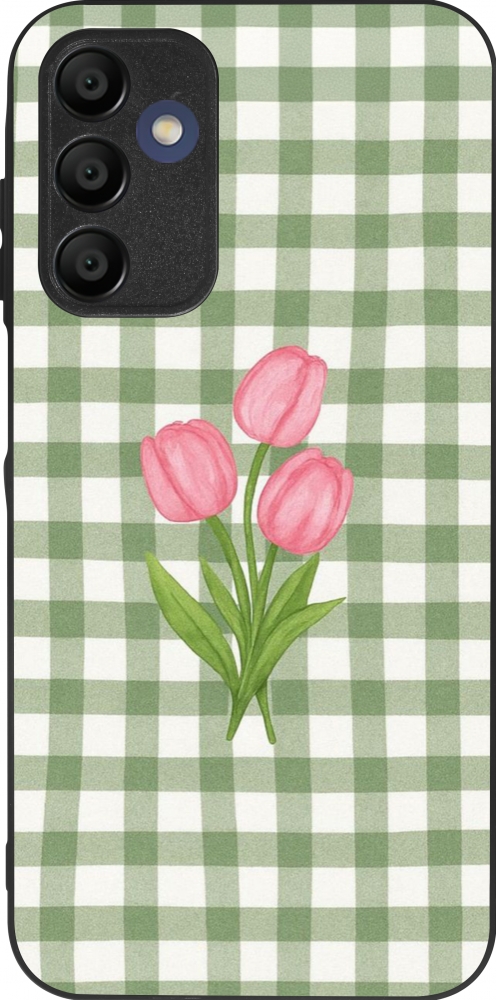 Coque Samsung Galaxy A16 - Silicone rigide noir Green vichy tulips 2026