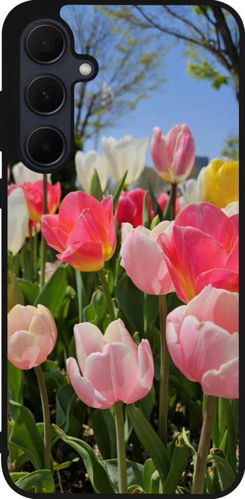 Coque Samsung Galaxy A36 - Silicone rigide noir Tulips 2026