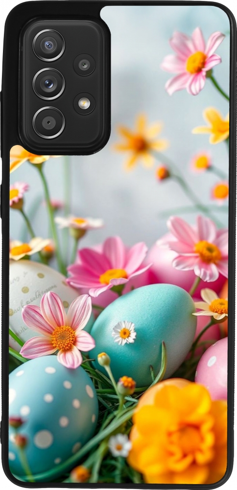Coque Samsung Galaxy A52 - Silicone rigide noir Easter 2026 Eggs with flowers