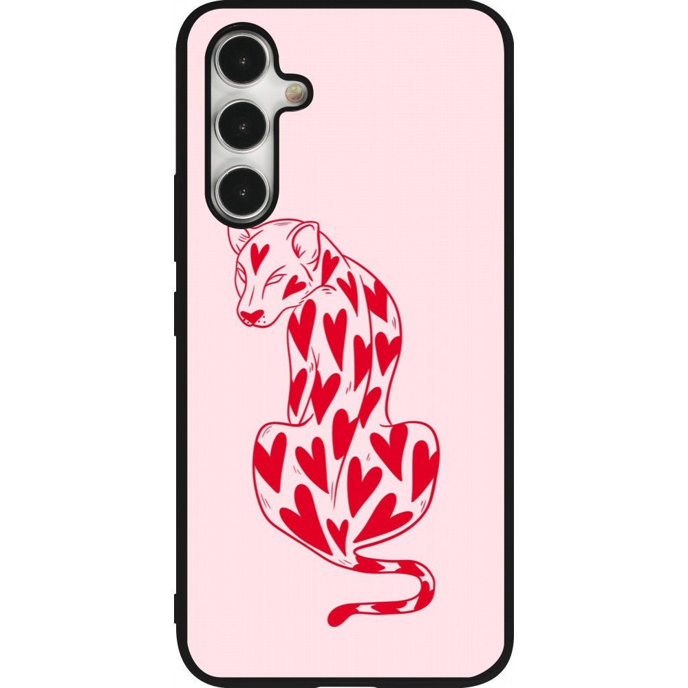 Coque Samsung Galaxy A54 5G - Silicone rigide noir Leopard with hearts 2026