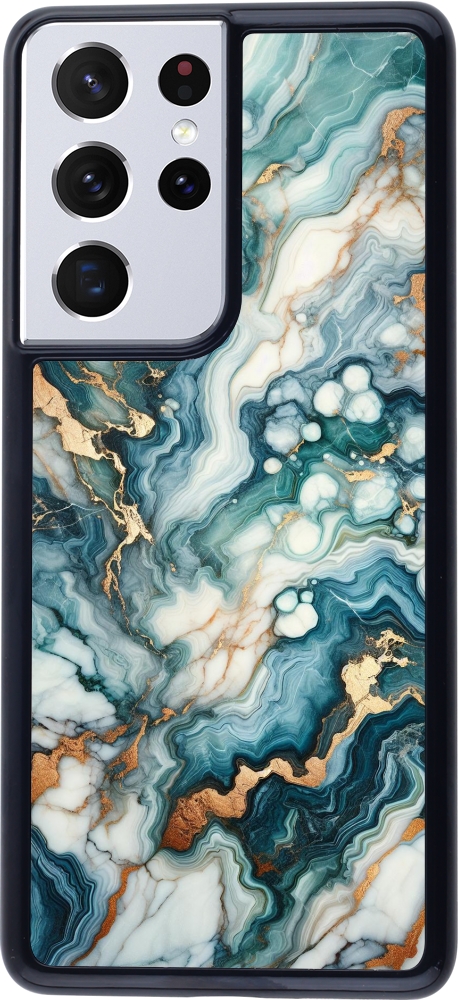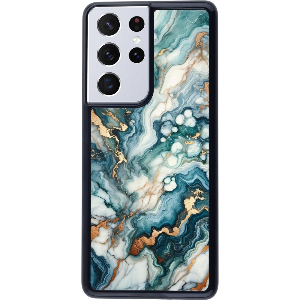 Coque Samsung Galaxy S21 Ultra 5G - Marbre Vert Bleu Doré