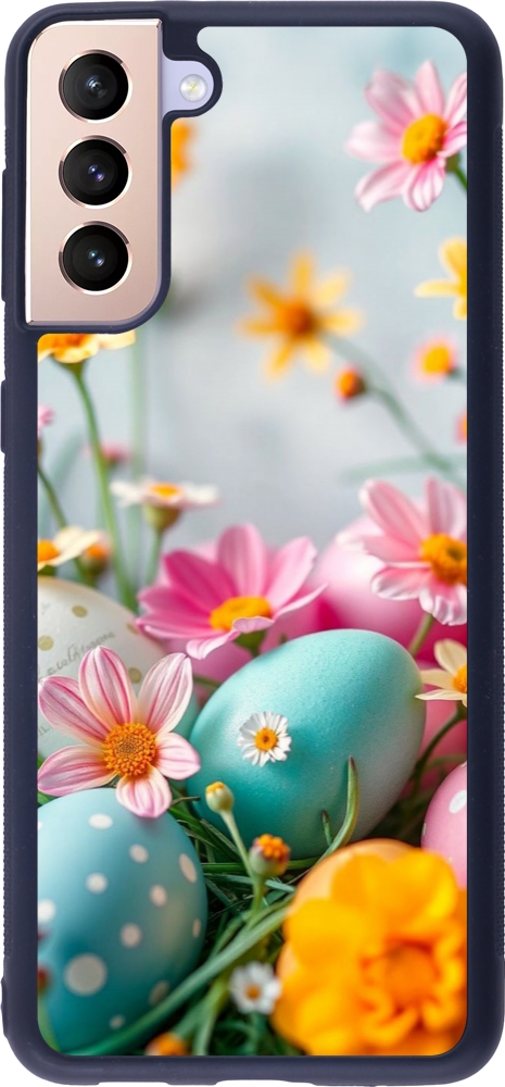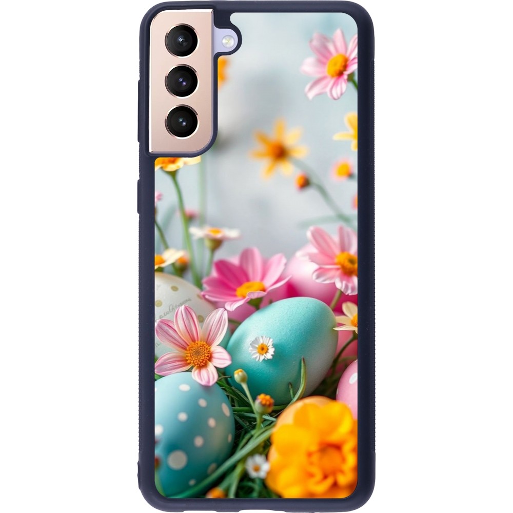 Coque Samsung Galaxy S21+ 5G - Silicone rigide noir Easter 2026 Eggs with flowers