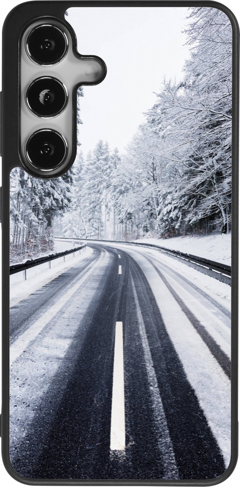 Coque Samsung Galaxy S25 - Silicone rigide noir Winter 22 Snowy Road
