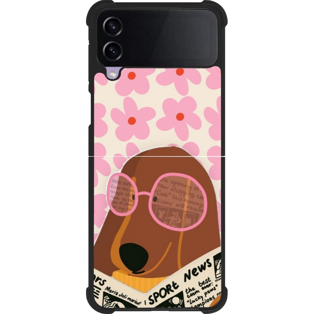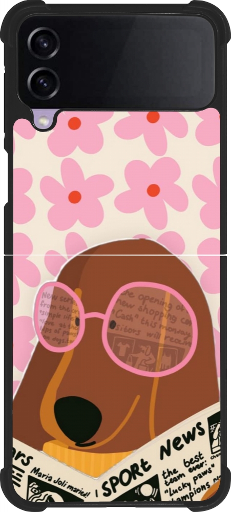 Coque Samsung Galaxy Z Flip4 - Silicone rigide noir Dog with newspaper 2026