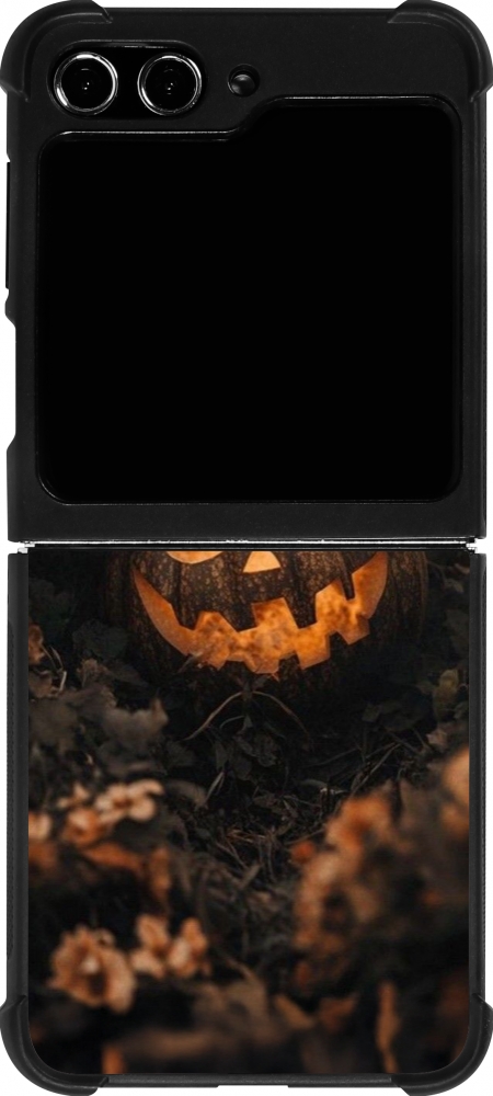 Coque Samsung Galaxy Z Flip5 - Silicone rigide noir Halloween 2025 Pumpkin with flowers