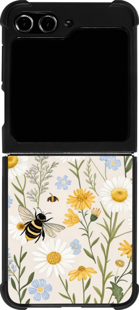 Coque Samsung Galaxy Z Flip5 - Silicone rigide noir Pattern bees Spring 2026