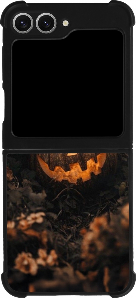 Coque Samsung Galaxy Z Flip6 - Silicone rigide noir Halloween 2025 Pumpkin with flowers