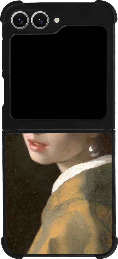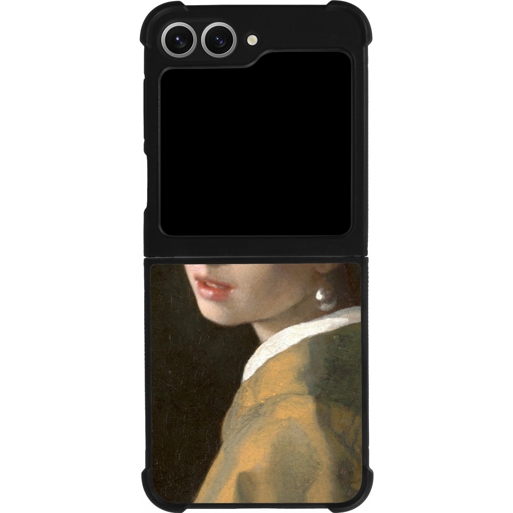 Coque Samsung Galaxy Z Flip6 - Silicone rigide noir Tableau art - La Jeune fille à la perle - Johannes Vermeer