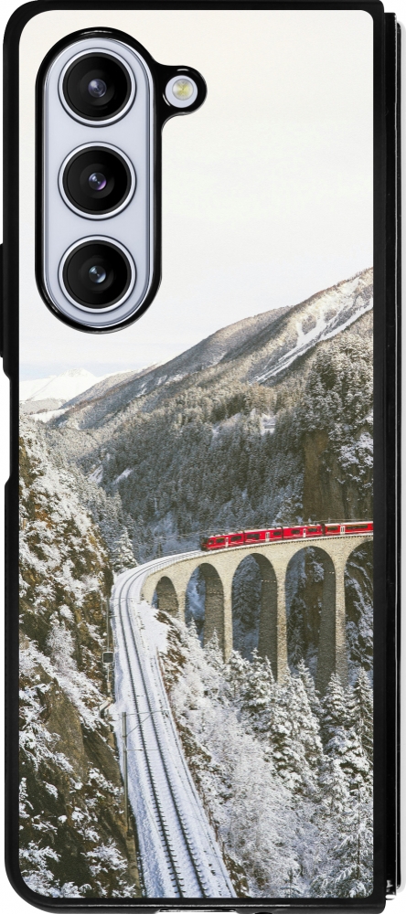 Coque Samsung Galaxy Z Fold5 - Silicone rigide noir Winter 25 Winter polar express