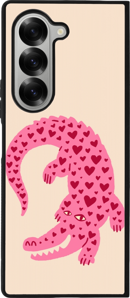 Coque Samsung Galaxy Z Fold6 - Silicone rigide noir Pink crocodile 2026