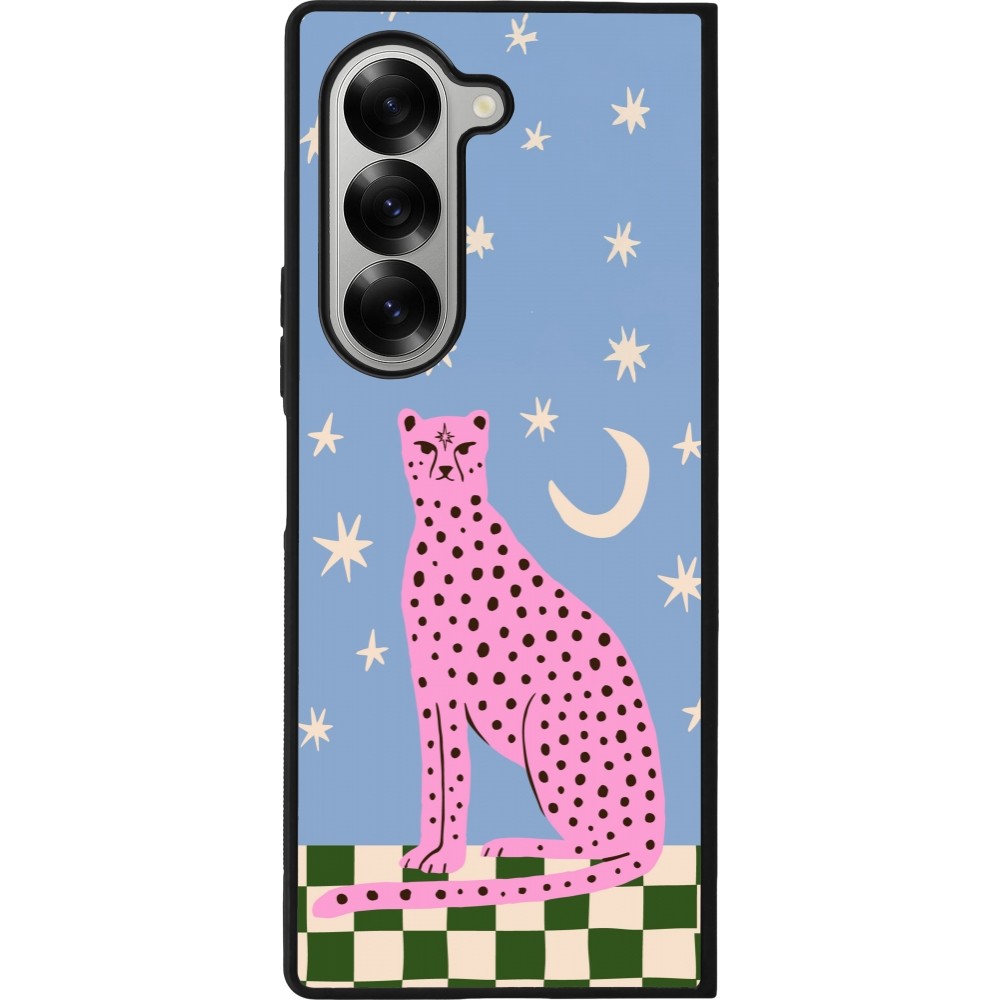 Coque Samsung Galaxy Z Fold6 - Silicone rigide noir Pink leopard with stars 2026
