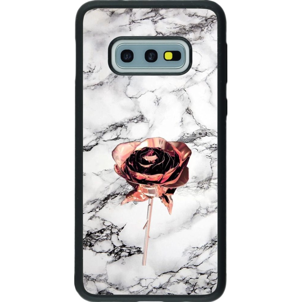 Coque Samsung Galaxy S10e - Silicone rigide noir Marble Rose Gold