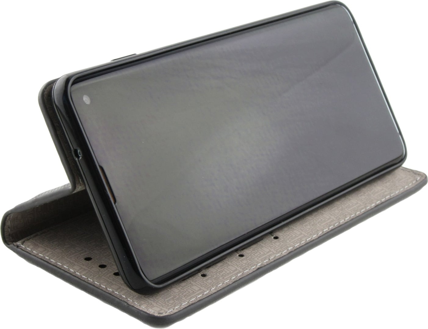 L'étui peut en outre être utilisé comme support pour regarder confortablement des films. Un motif géométrique est représenté sur les faces avant et arrière de l'étui, ce qui lui confère un look très élégant. Le motif est un dessin continu, chaque housse est donc unique et aucun motif ne se ressemble.