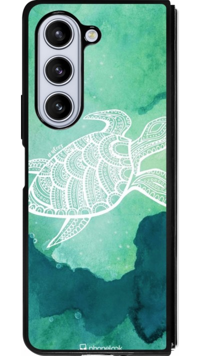 Coque Samsung Galaxy Z Fold5 - Silicone rigide noir Wavy Rectangle Green Purple